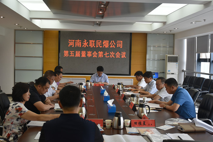 河南省永聯民爆器材股份有限公司第五屆董事會第七次會議于2020年6月2日在鄭州市惠濟區開元路79號召開。會議應到董事11人,實到董事8人(3人請假并委托投票),應到監事5人,實到監事4人,符合《公司法》及公司《章程》的有關規定,會議有效。會議由董事長劉嵩主持,董事會秘書王虎同志記錄。