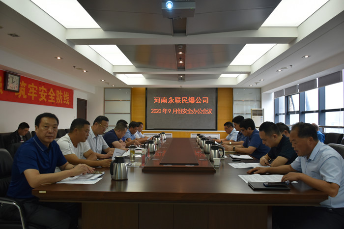 2020年9月21日,河南省永聯民爆器材股份有限公司召開了9月份安全辦公會議,公司領導班子、安委會成員、安委會辦公室成員以及魯山縣、輝縣市、偃師市、鞏義、焦作市、淅川等6家分公司負責人參加了會議。會議由公司副總經理靳義國主持,公司董事長、總經理劉嵩參加會議并講話。