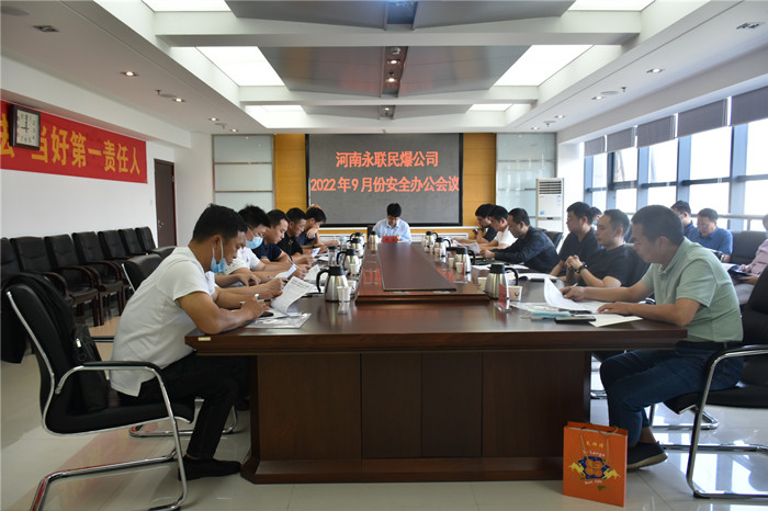 2022年9月30日,河南省永聯民爆器材股份有限公司召開了9月份安全辦公會議,公司領導班子、安委會成員、安委會辦公室成員參加了會議。會議由公司副總經理靳義國主持,公司董事長、總經理劉嵩參加會議并講話。