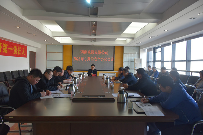 2023年3月28日,河南省永聯民爆器材股份有限公司召開了3月份安全辦公會議,公司領導班子、安委會成員、安委會辦公室成員以及桐柏、輝縣市、郟縣、義馬市、信陽、永城等6家分公司負責人參加了會議。會議由公司副總經理靳義國主持,省委軍民融合辦民爆局二級調研員李張巍應邀出席會議并講話。