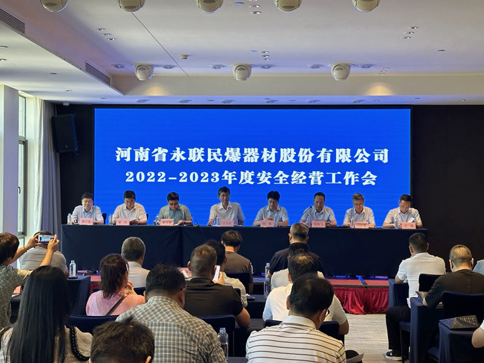 2023年6月30日,河南省永聯民爆器材股份有限公司2022-2023年度安全經營工作會議在鄭州喆鵬酒店召開,公司安全生產委員會成員以及所屬41家分公司負責人參加了會議。會議由副總經理張鐵飛主持,省委軍民融合辦民爆局局長王玉生應邀出席會議并講話。