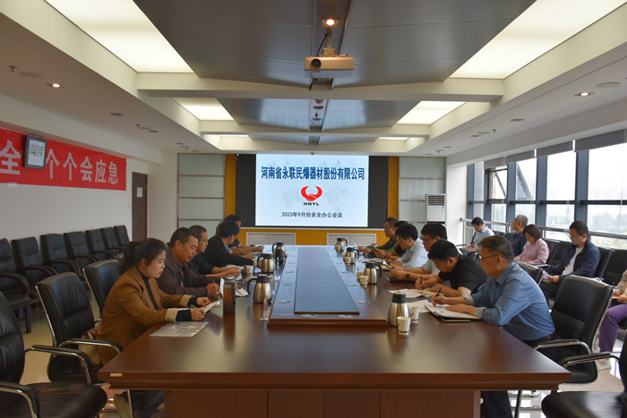 2023年9月25日,河南省永聯民爆器材股份有限公司召開了9月份安全辦公會議,公司領導班子、安委會成員、安委會辦公室成員以及南召縣、西峽縣、義馬市、安陽市、信陽平橋、商城縣等6家分公司負責人參加了會議。會議由公司副總經理靳義國主持,公司董事長、總經理劉嵩參加會議并講話。