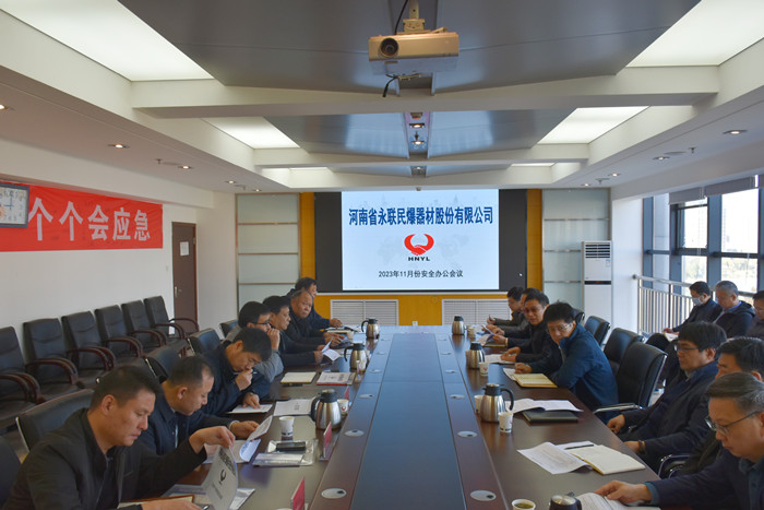 2023年11月24日,河南省永聯民爆器材股份有限公司召開了11月份安全辦公會議,公司領導班子、安委會成員、安委會辦公室成員以及光山縣、澠池縣、南召縣、汝州、義馬市、陜州、偃師市、鎮平、永城、商城縣等10家分公司負責人參加了會議。會議由公司副總經理靳義國主持,公司董事長、總經理劉嵩參加會議并講話。