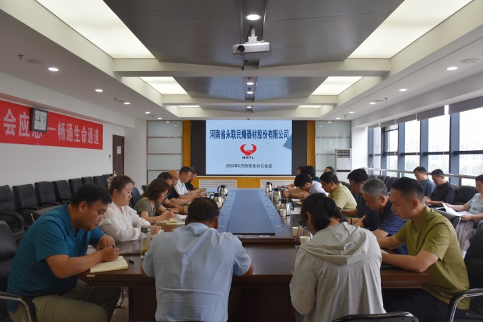2025年5月30日,河南省永聯民爆器材股份有限公司召開了5月份安全辦公會議。公司領導班子、安委會成員、安委會辦公室成員以及靈寶市、舞鋼市、方城縣、駐馬店市、新安縣、鶴壁等6家分公司負責人參加了會議。會議由公司工會主席黃小虎主持,董事長劉嵩、總經理靳義國參加會議并講話。
